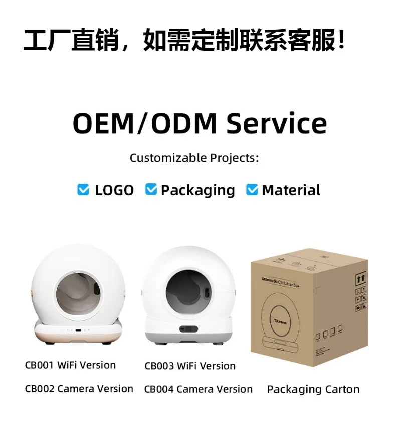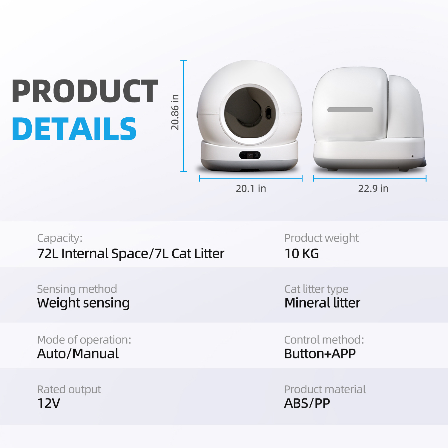 Our CB003 Self-Cleaning Cat Litter Box is one of our most advanced smart cat litter box, offering a self-cleaning feature that makes cat care effortless. With built-in odor control, automated waste removal, and a sleek design, this cat litter box is designed to ensure a hygienic and odor-free environment for both pets and their owners. Perfect for busy households, this litter box reduces the time spent on daily maintenance.